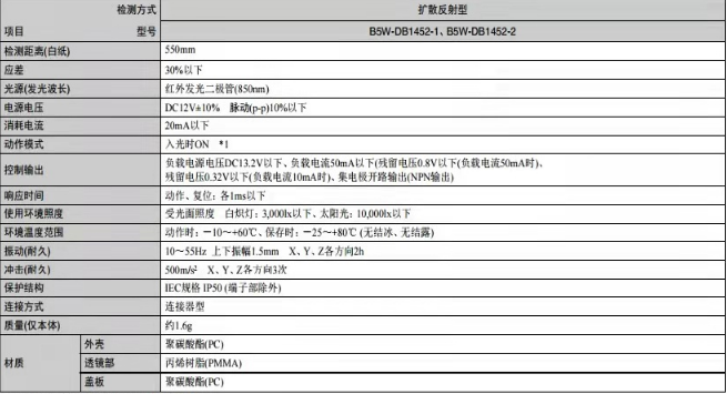 歐姆龍B5W-DB采用集電極(NPN)開路輸出,電源電壓DC12V,消耗電流可達到20mA以下,即使在較低的功耗下,也可實現(xiàn)高性能。并且與同類產(chǎn)品相比,B5W-DB不易受到環(huán)境光的影響。