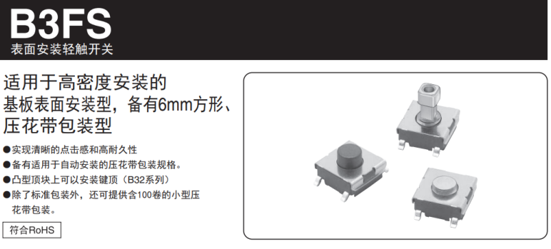 那么在變頻器的操作面板是上,會有用到開關,變頻器行業中的開關歐姆龍占據大部分市場,我們行業常用的系列型號B3FS-1002P,下圖為歐姆龍的開關產品。