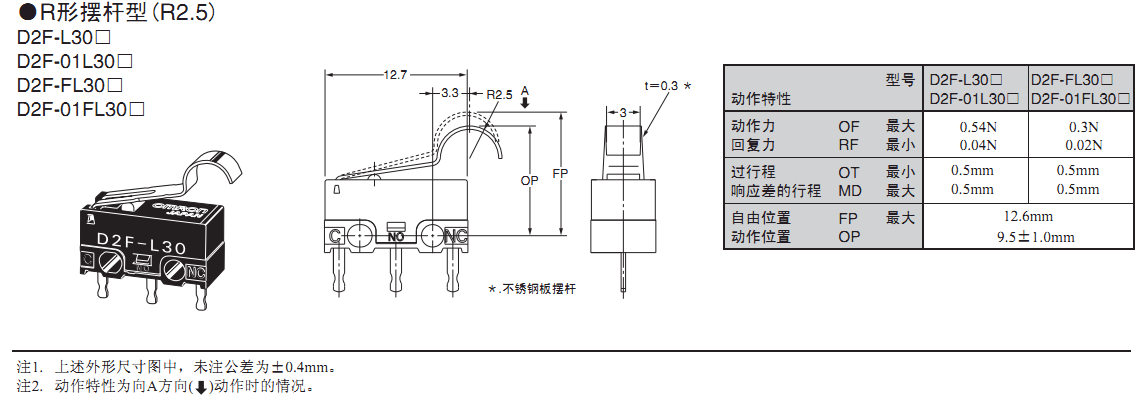 歐姆龍微動開關,D2F-01FL2-D-E,歐姆龍微動開關D2F