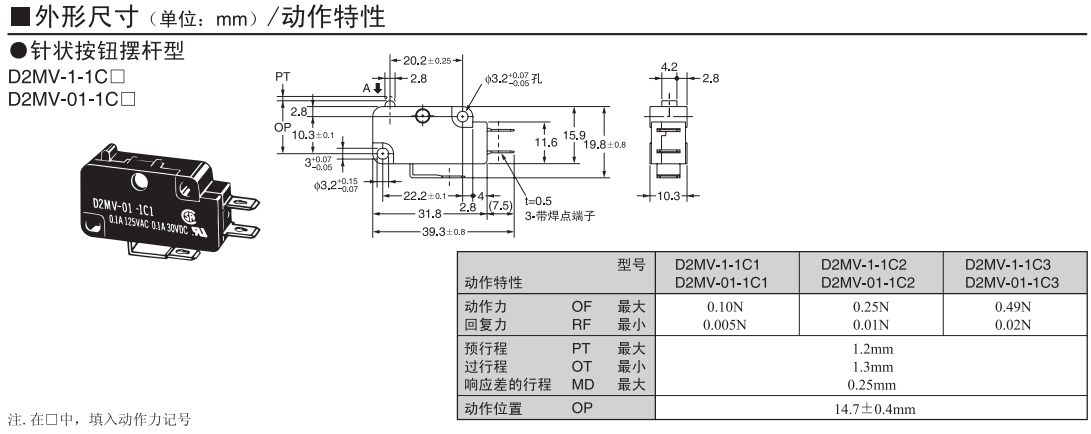 歐姆龍微動開關,D2MV-1-1C3,歐姆龍微動開關D2MV