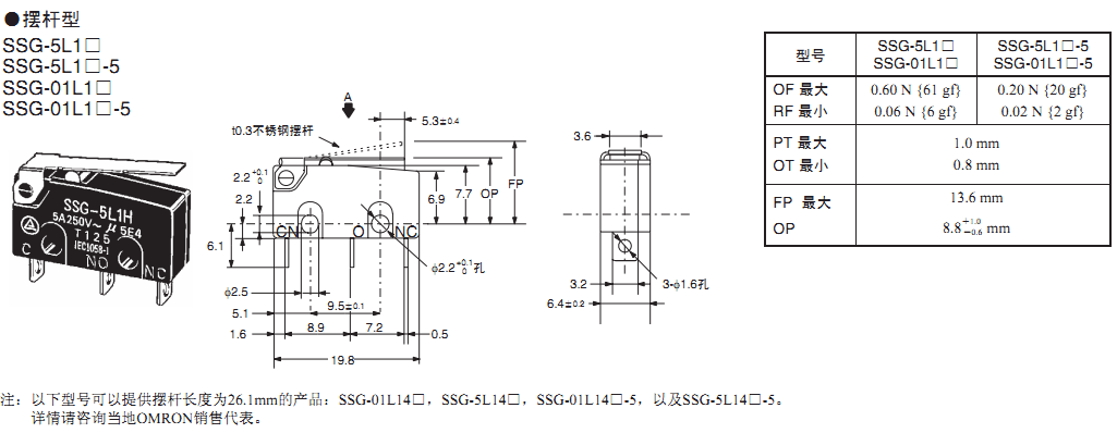 歐姆龍微動開關,SS-5L1P,歐姆龍微動開關SS