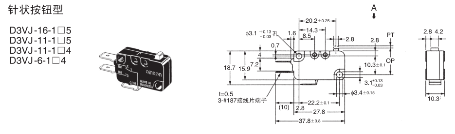 歐姆龍微動開關, D3VJ-63-1C5,歐姆龍微動開關D3VJ