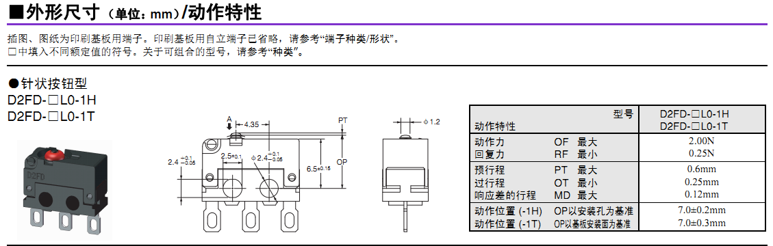 歐姆龍微動開關, D2FD-2L0-1H,歐姆龍微動開關D2FD