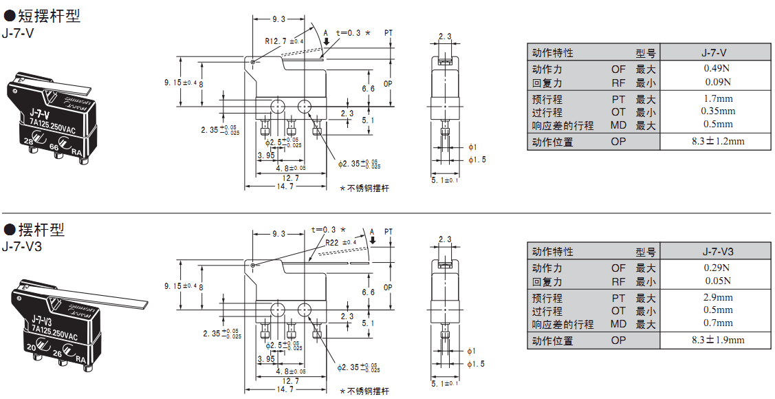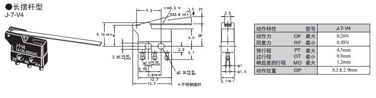 歐姆龍微動開關,J-7-V4,歐姆龍微動開關J