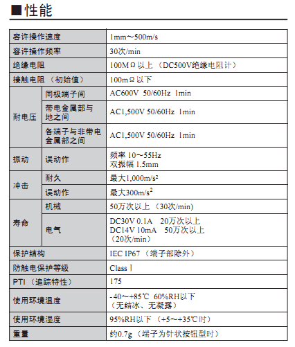 具備高溫耐久性(耐熱達+85℃)及防滴結構,可廣泛應用于耐環境性要求高的用途。(符合IP67:端子部除外)