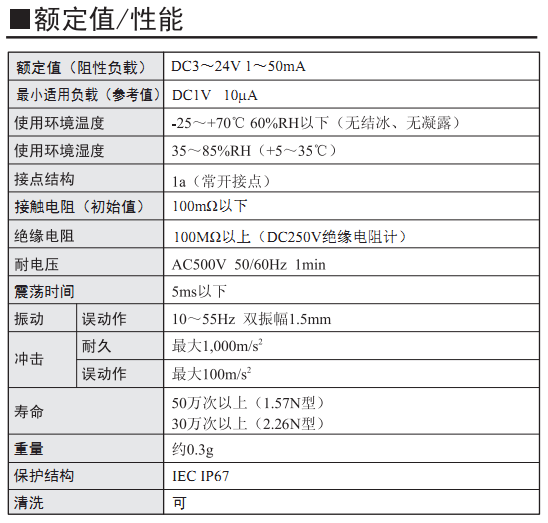 相當于密封構造IP67(IEC-60529)即使在塵埃較多或有水的地方也能確保高接觸可靠性。※端子部除外。