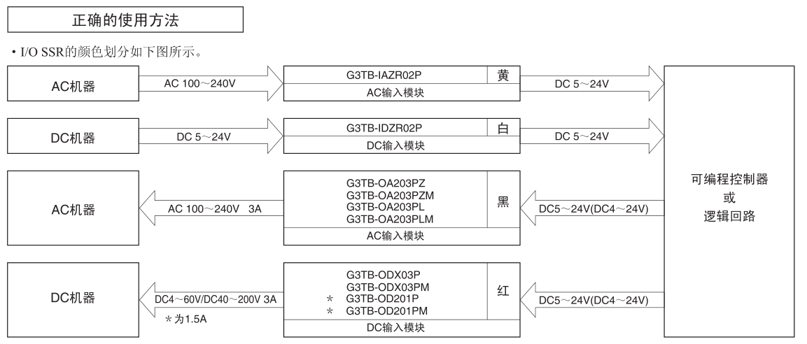 ? 具有輸入模塊(AC、DC)、輸出模塊(AC、DC) 產品系列,各模塊用顏色區分