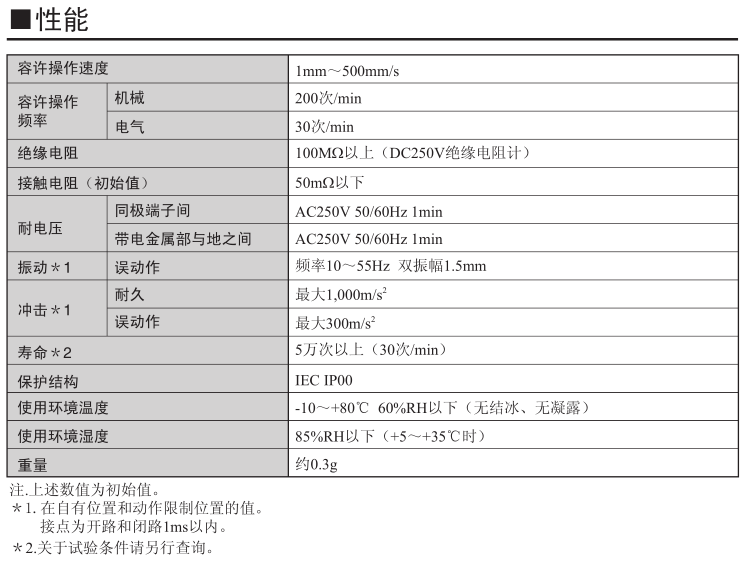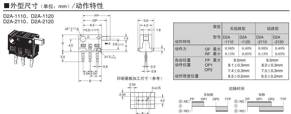 歐姆龍超小型(高6×寬8×深4.2mm)、輕量(約0.3g)、3mm的長行程。