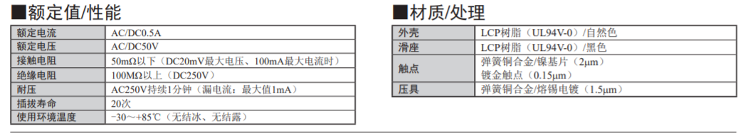 接點構造備有雙面觸點型和上觸點型兩種。 (上接點型只有0.5mm間距)