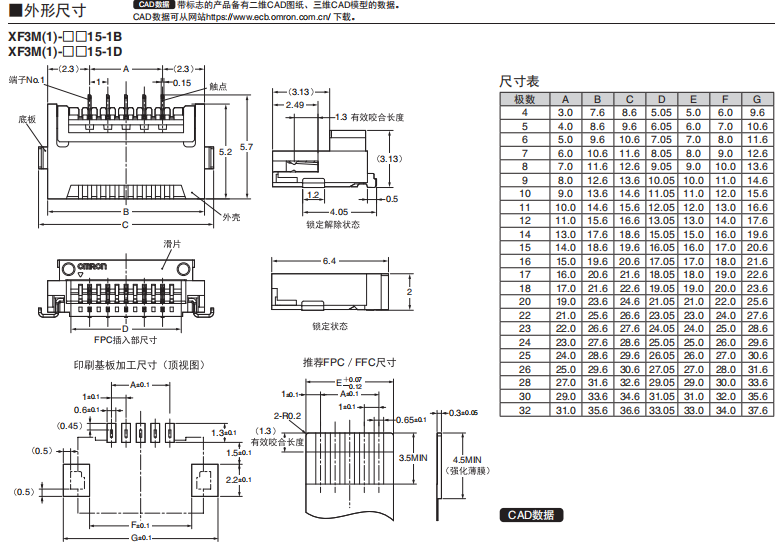 接點構造備有雙面觸點型和上觸點型兩種。 (上接點型只有0.5mm間距)
