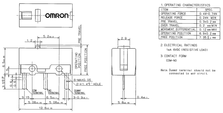 D2FC-F-7N, 克力為:60+/-15G,壽命為500萬次;