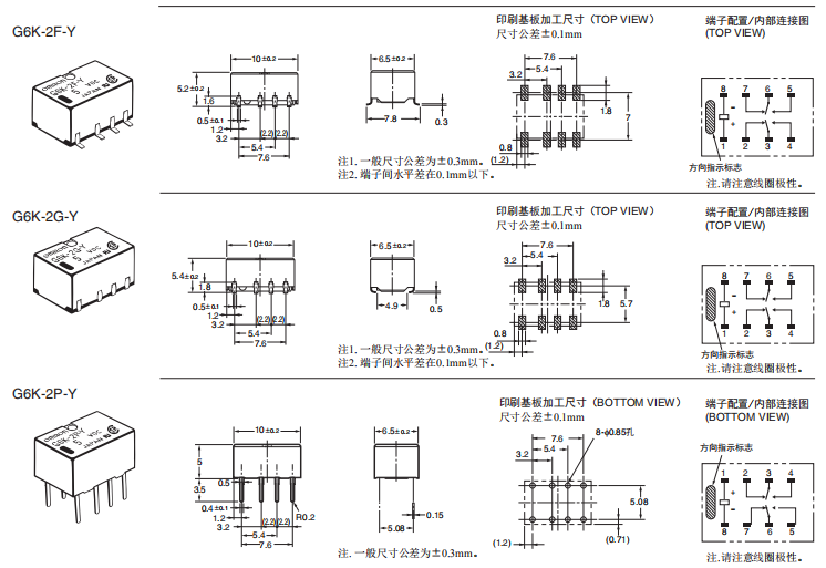 高5.2mm×寬6.5mm×長10mm的超小型,對應(yīng)高密度封裝(G6K(U)-2F(-Y)型)。