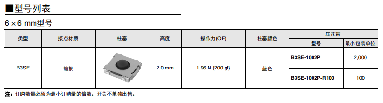 B3SE超薄型輕觸開關