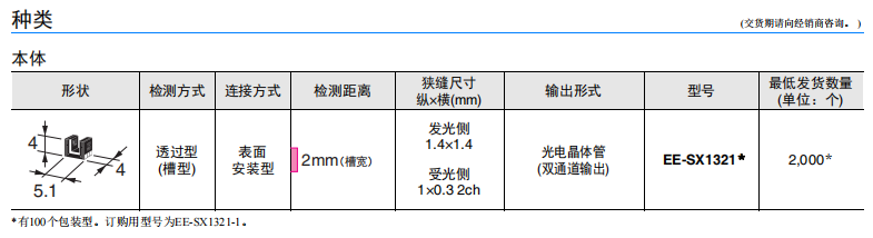 EE-SX1321 微型光電傳感器(透過型)